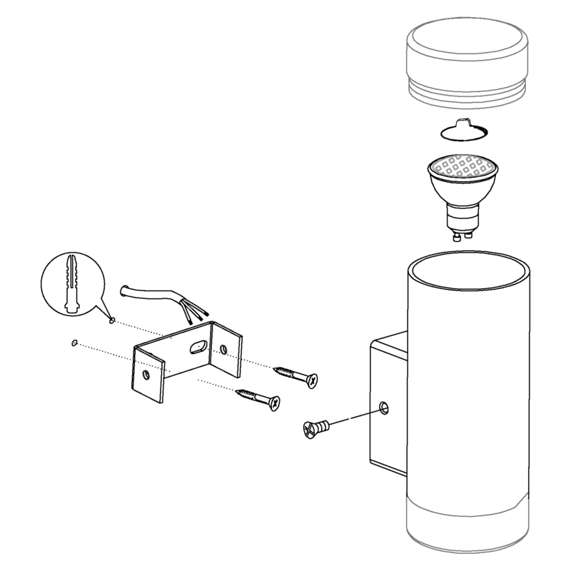 Sursă de lumină: Echipată cu două becuri LED GU10 de 4,6W fiecare, oferind un flux luminos total de 800 lumeni.