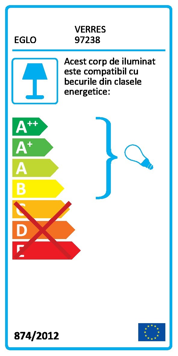Aplica exterior EGLO VERRES 97238, E27 1X12W IP44, Inox, Plastic, Alb