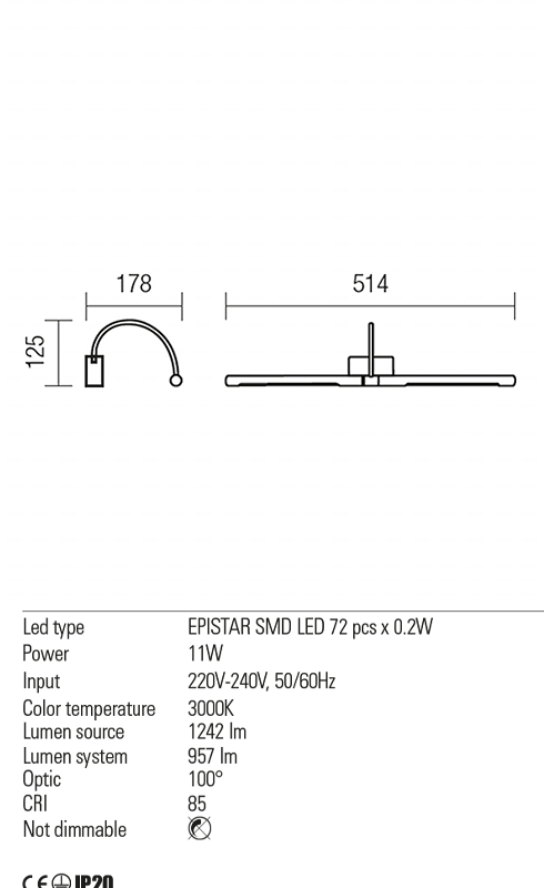 Aplica KENDO, nichel satinat, LED 11W, 3000K, 1242 lm