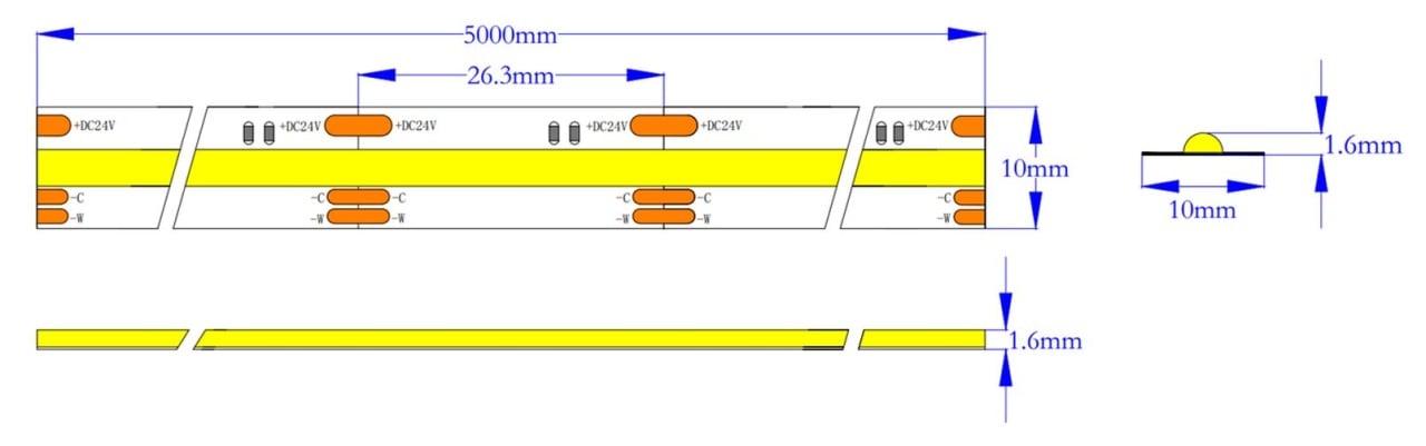 Bandă LED flexibilă COB CCT 16W/m 608led/m CRI90 24V IP65