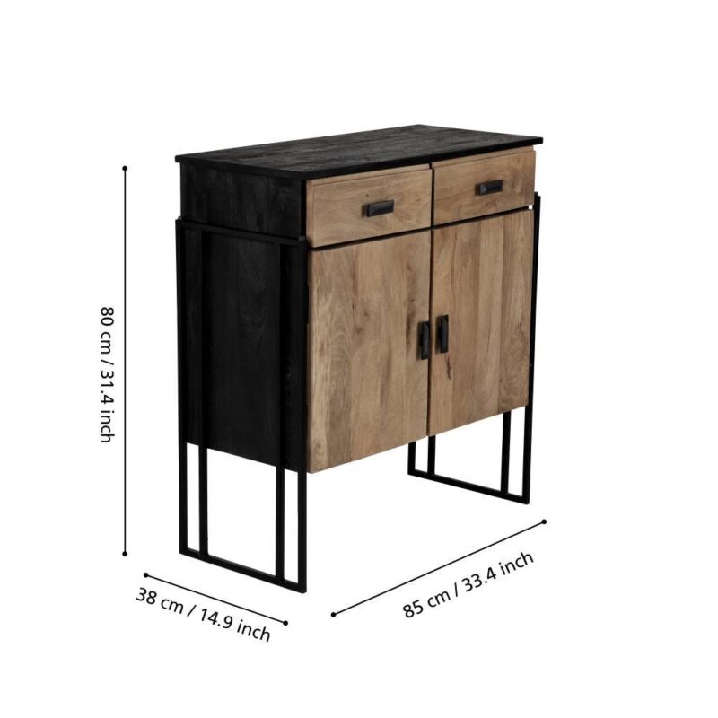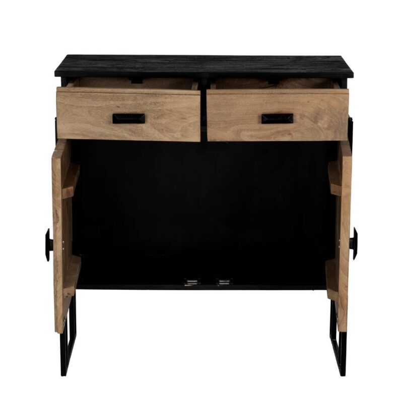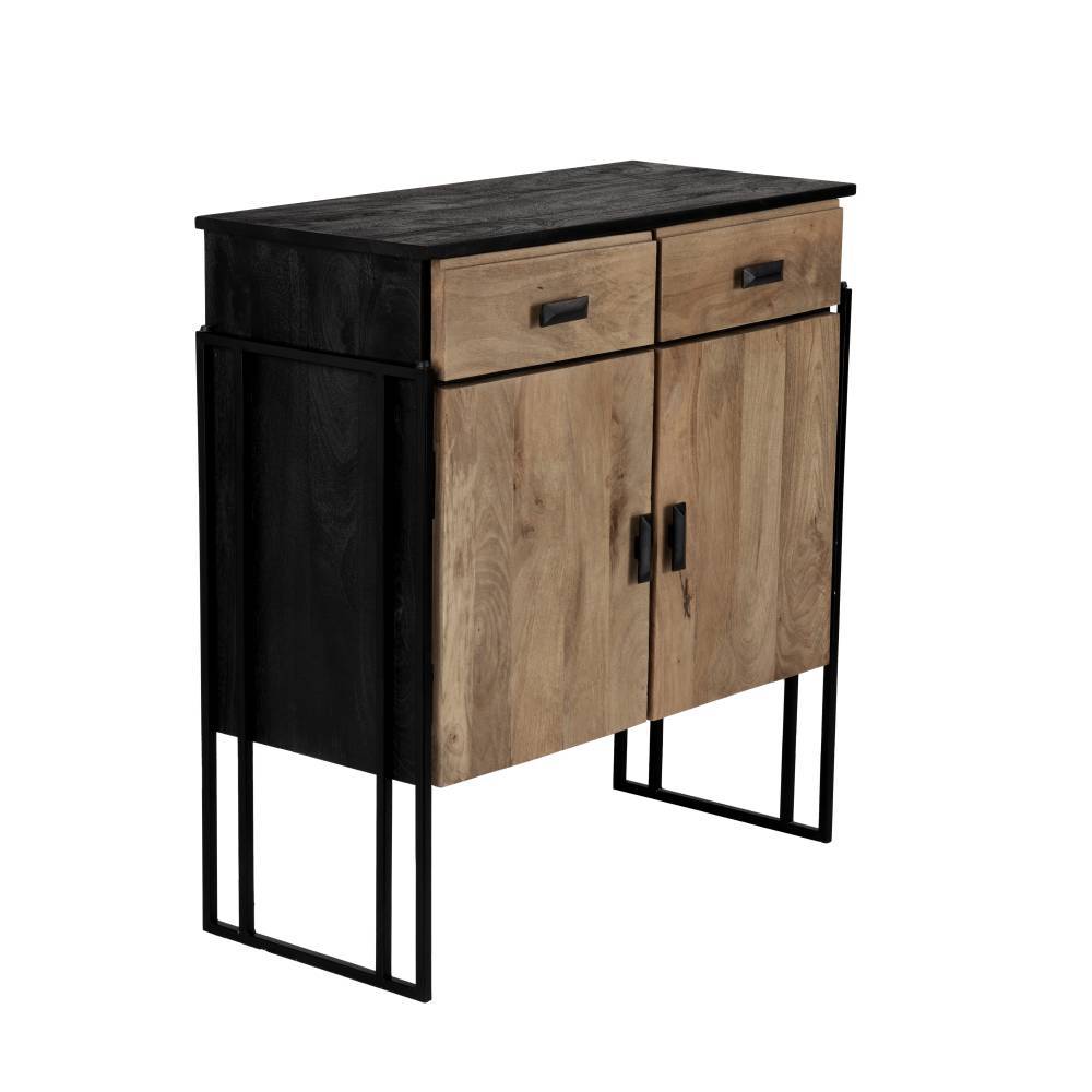 Comodă AMPASIMBE 424765, lemn de mango, natural, negru, metal, negru