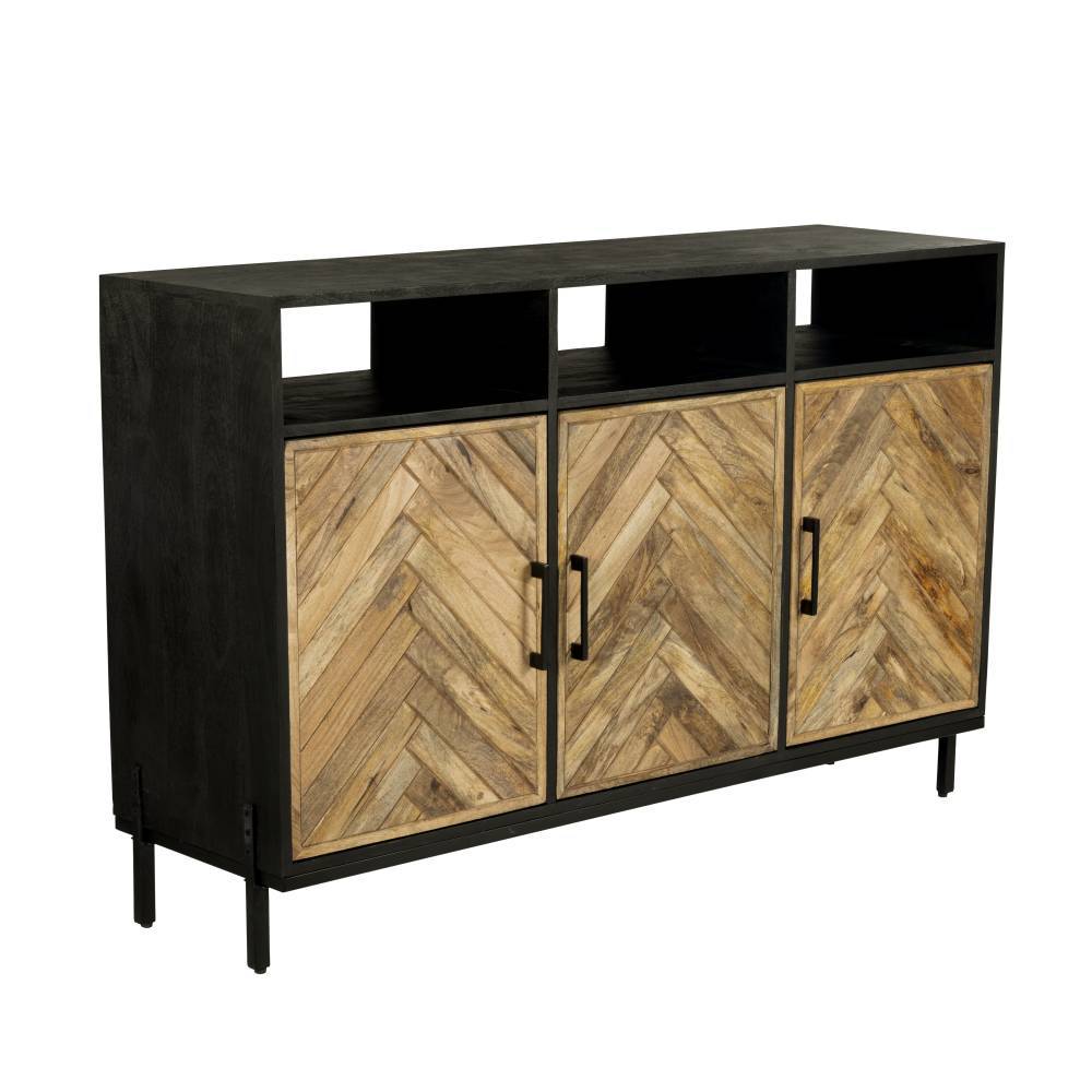Comodă AMPASIMBE 424835, lemn de mango, scândură de mobilier, metal, negru, maro