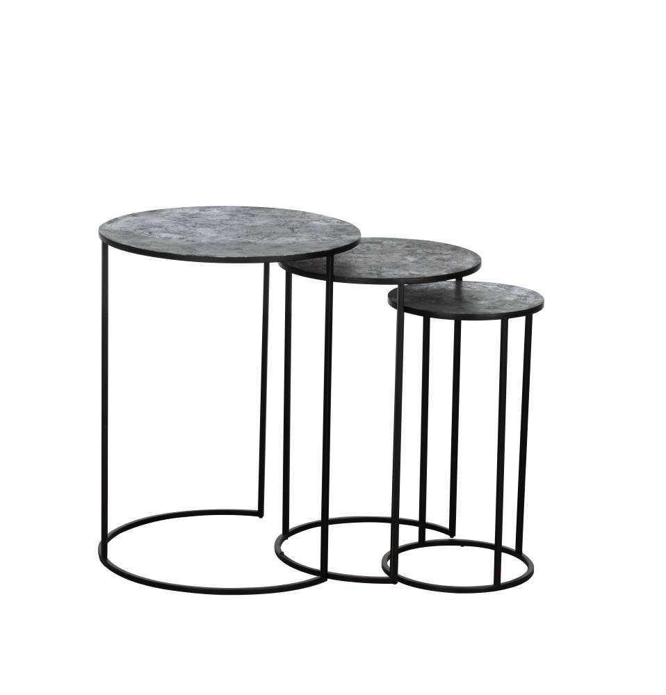 Set 3 mese de cafea TOWADA 424026, oțel argintiu-negru