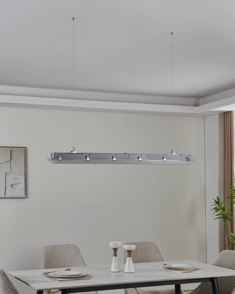 Depinde de model! Corpurile de iluminat aplicate pe tavan nu permit reglarea înălțimii. Corpurile pe fir sunt echipate cu un mecanism special pentru ajustare. Corpurile pe lanț sunt reglabile prin prinderea lanțului la înălțimea dorită.